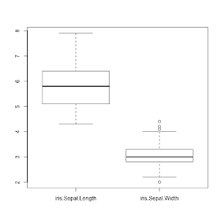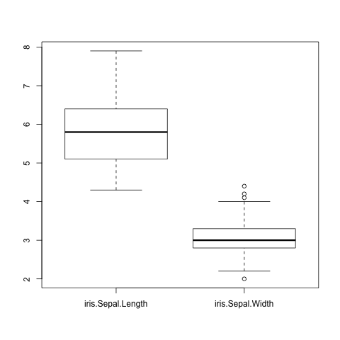boxplot(data.frame(iris$Sepal.Length, iris$Sepal.Width))